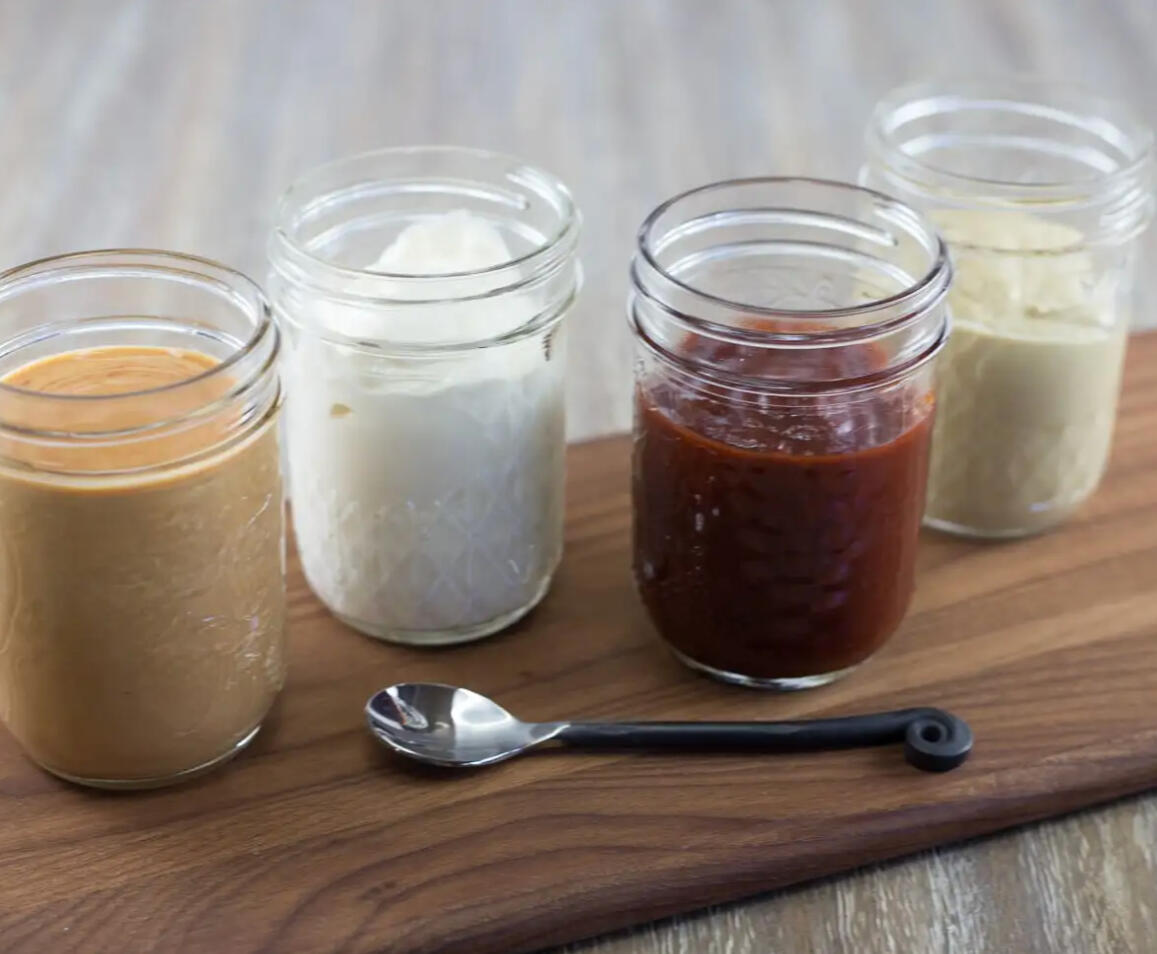 Ketchup, mustard, salsa, bbq sauce, hot sauce, aioli, peanut butter, pesto, and more.